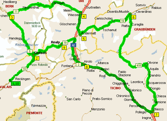 Das Wallis haben wir in lockerer Landstraßenfahrt (Waldshut - Luzern -