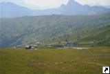 An der westlichen Dammkrone, gegenüber der Passtrasse stehen ein paar Häuser.