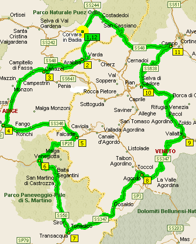 Passo di Rolle (1972m), wobei letzterer eine großartige Kurvenvielfalt