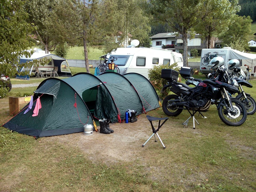 abends beschließen wir, diesen Sommerurlaub nun enden zu lassen. Am folgenden Morgen bauen wir sehr zeitig unser Zelt ab und schippern über Meran, Reschen