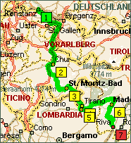 (Arlberg, Reschenpass, langweilig) oder über die Schweiz (Julier, Bernina,