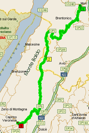 ist die Höhenstraße von Mori bis Caprino (SP3/SP8, ca 60 km,