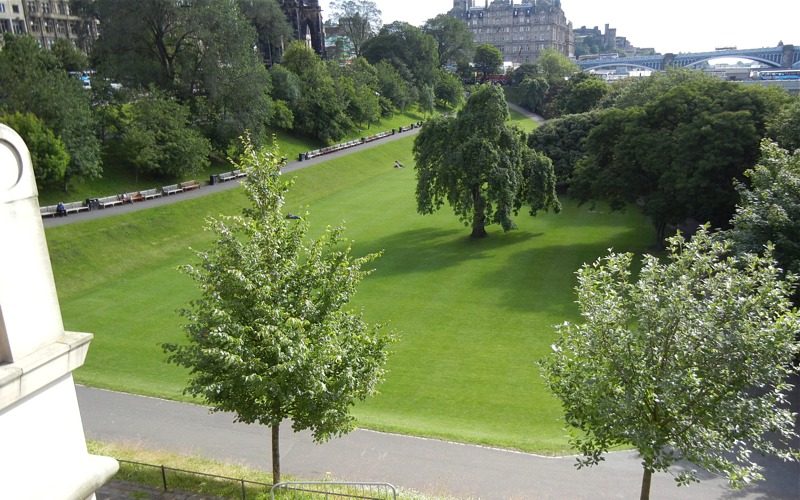 Einstimmung die Princess Street hinunter. Dann besteigen wir den Schlosshügel (boah, sehr anstrengend)
