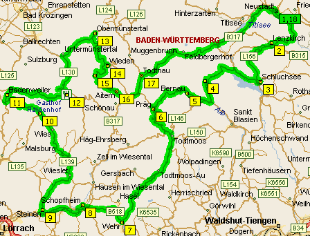endet die L135 und wir fahren durch das Kandertal und weiter bis Badenweiler.