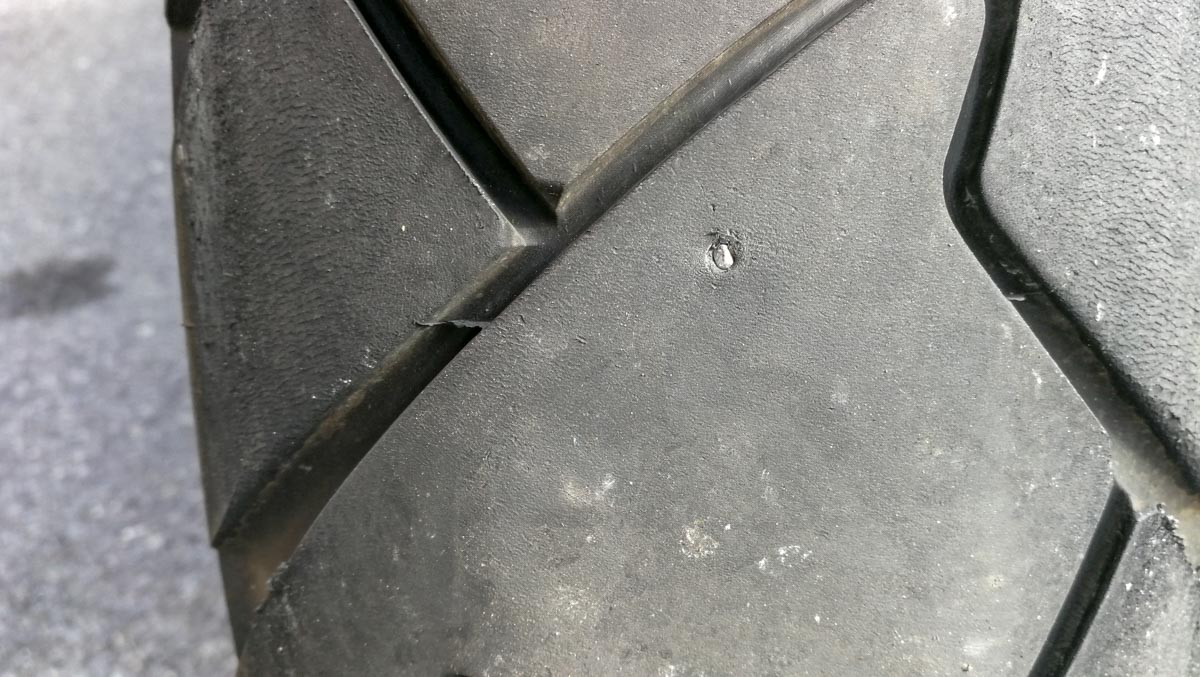 die war nicht Schuld - ihr Hinterreifen war platt - ein hübschen, kleines Nägelchen,